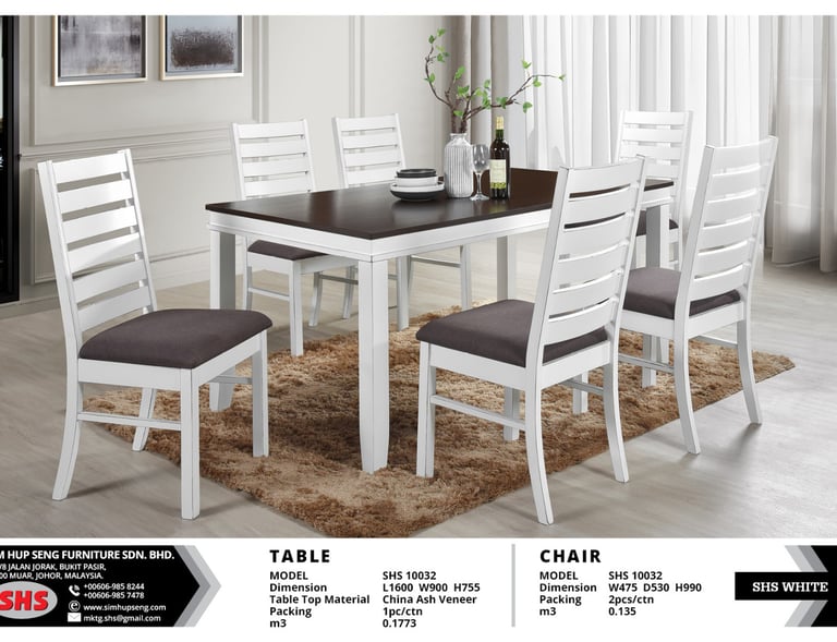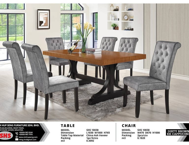Material: China Ash Veneer Table Top Table: L1830 W1000 H765 mm Chair: W470 D670 H1000 mm